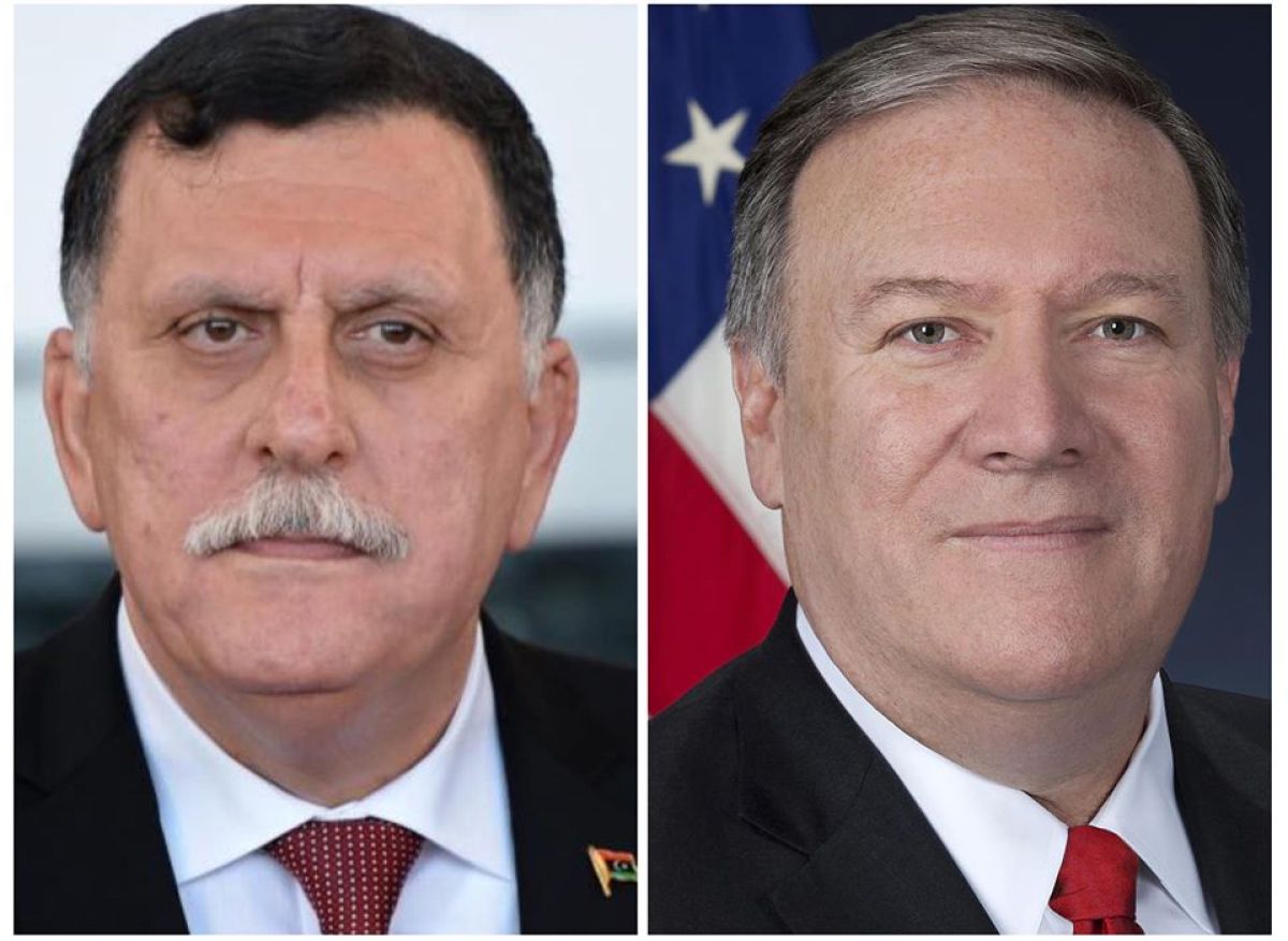 أفاد وزير خارجية الولايات المتحدة مايك بومبيو، خلال اتصال هاتفي مع رئيس المجلس الرئاسي لحكومة الوفاق، فائز السراج اليوم الجمعة، أنه لا حل عسكري للأزمة الليبية، مشيرا إلى أن الحل يكمن في العودة إلى المسار السياسي،والالتزام بنتائج مؤتمر برلين.