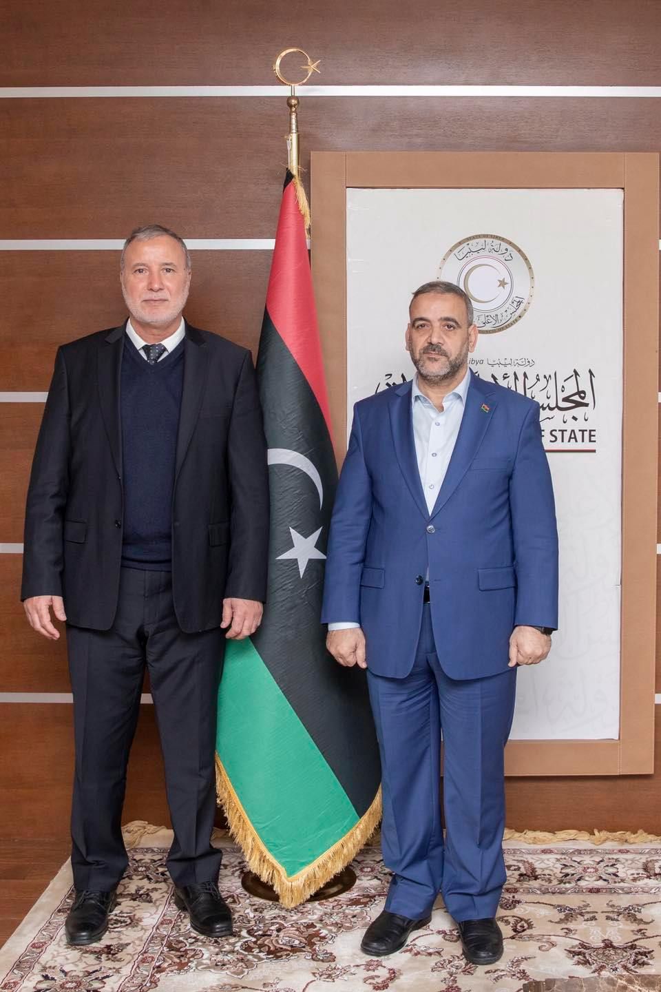 بحث رئيس المجلس الأعلى للدولة، خالد المشري آخر المستجدّات على الساحة الليبية، وذلك إثر لقاء جمعه مع آمر المنطقة العسكرية الغربية، اللواء أسامة الجويلي.