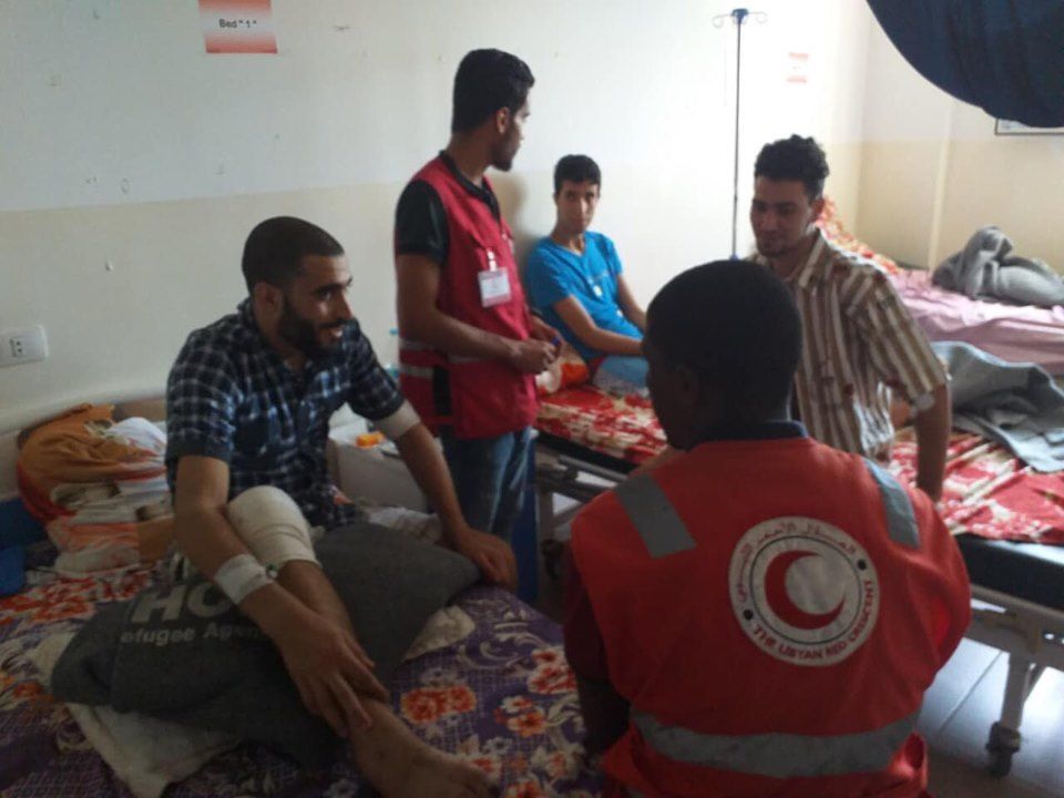 الهلال الأحمر يزور نازحي مركز تاجوراء وجرحاهم