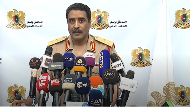 وأوضح المسماري أنه سيتم إغلاق المجال البحري والجوي الليبي أمام الطائرات والسفن التركية.