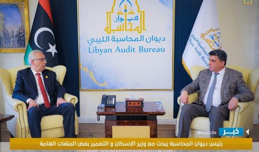 ناقش رئيس ديوان المحاسبة “خالد شكشك” خلال اجتماعه اليوم الثلاثاء مع وزير الإسكان والتعمير بحكومة الوحدة الوطنية “أبوبكر الغاوي” عددا من المواضيع من بينها ملف الإقراض الشبابي وضوابط منحها.