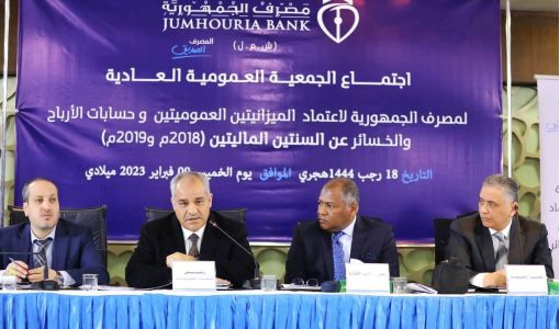 اعتمدت الجمعية العمومية لمصرف الجمهورية خلال اجتماعها العادي الذي عُقِدَ اليوم الخميس بطرابلس، الميزانيات العمومية وحسابات الأرباح والخسائر للسنتيْن الماليتيْن 2018 و2019.