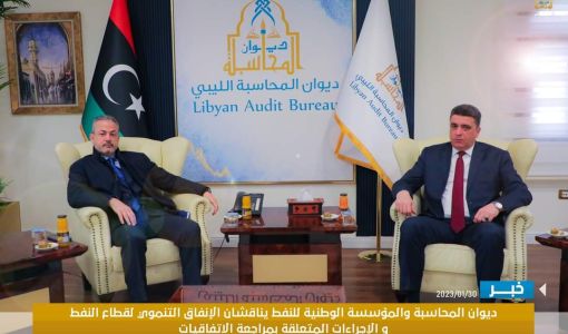 ناقش رئيس ديوان المحاسبة “خالد شكشك” اليوم الاثنين، مع رئيس مجلس إدارة المؤسسة الوطنية للنفط “فرحات بن قدارة” الميزانية الاستثنائية لقطاع النفط وأثرها على معدلات الإنتاج، بإلإضافة إلى ملف المحروقات، والإجراءات المتعلقة بمراجعة الاتفاقيات، وذلك بحضور الإدارات المختصة بالديوان.