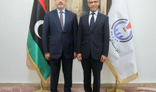 وبحث اللقاء آليات التعاون المشترك بغية تحقيق الإستقرار والإستقلال الدائمين لقطاع النفط الليبي الأمر الذي ينتج ارتفاعاً في مستوى الإنتاج.