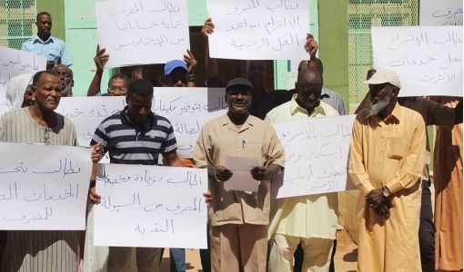 وندد المحتجون بعدم توفير إدارة المصرف لبعض الخدمات، كالمكيفات