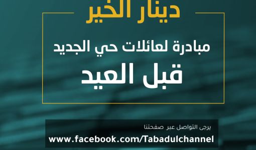 إثر الهجوم الغادر الذي أدى لمقتل مندوبي حي الجديد المرحومين “حامد البديوي “و “محمد عبدالعال “الذين طالتهما يد الإجرام و هما بصدد تأدية واجبهما لإدخال الفرحة على قلوب العائلات قبل العيد المبارك، و أدى لسرقة سيولة تقدر ب 840 ألف دينار، و في إطار سعيها للتخفيف على المواطنين أصحاب الصكوك، إرتأت قناة تبادل توحيد الجهود الخيرية عبر التنسيق مع حملة “دينار الخير “و التي أطلقها أبناء سبها “عبدالمنعم الجه…