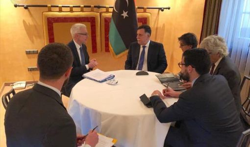 رئيس المجلس الرئاسي فائز السراج في ميونخ، مع سكرتير عام الشرطة الجنائية الدولية