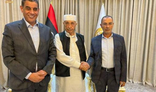 التقى رئيس مجلس النواب “عقيلة صالح” اليوم الثلاثاء بنائب رئيس مجلس الوزراء “علي القطراني” ورئيس اللجنة الإدارية بجهاز تنفيذ وإدارة مشروع النهر الصناعي، ” أحمد علي الديب”، وذلك للاطلاع على عدد من الملفات في الجانب الحكومي والخدمي.