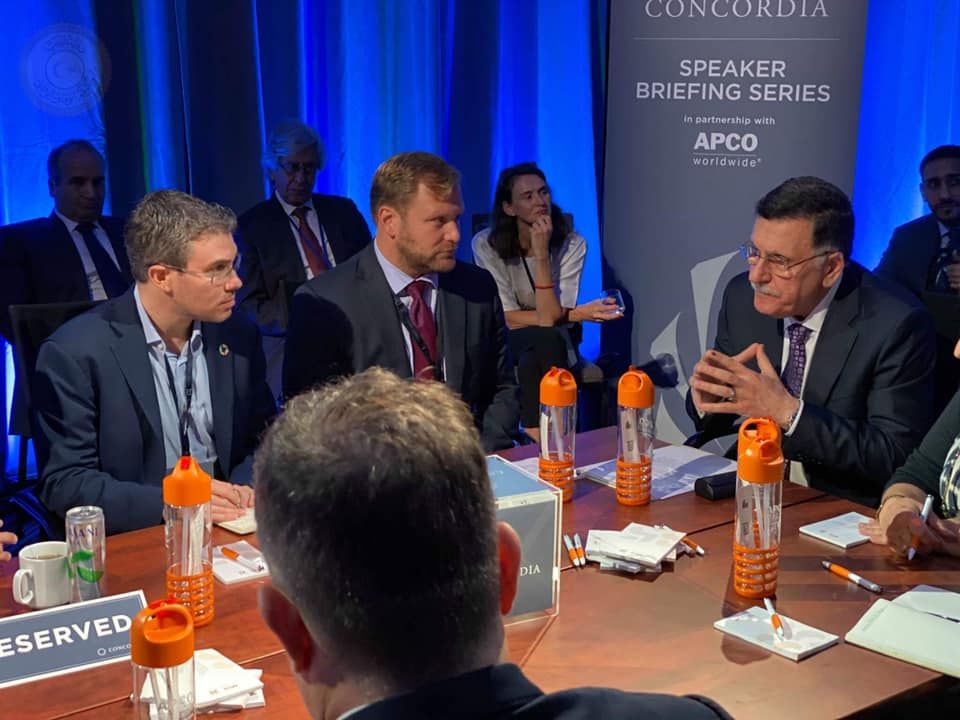 اجتمع رئيس المجلس الرئاسي لحكومة الوفاق الوطني “فائز السراج” الإثنين في نيويورك مع مسؤولي عدد من شركات النفط ومؤسسات الإستثمار الأمريكية، وذلك على هامش زيارته لحضور افتتاح الجمعية العامة للأمم المتحدة، بحضور رئيس مجلس إدارة شركة الاتصالات القابضة فيصل قرقاب.